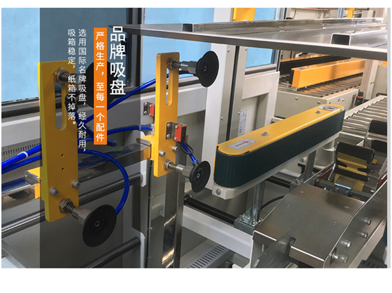自動開箱機是將疊成紙板的箱板自動打開,箱子底部按照一定程序折合,并用膠帶密封后輸送給裝箱機的設備。自動開箱機采用P.L.C + 觸摸顯示屏控制,設有缺料提前報警,無料自動停機的安全裝置,大大方便操作,減少生產人員和勞動強度。可配合熱熔機封箱。此款自動開箱機是較常用的標準機型,開箱能力是12箱/分鐘。